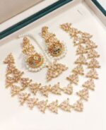 Add timeless beauty to your collection with this exquisite handcrafted Mala Set. Designed for special occasions or graceful everyday wear, it brings together tradition and charm in one elegant ensemble. Each piece is carefully crafted to enhance your style with a refined touch.